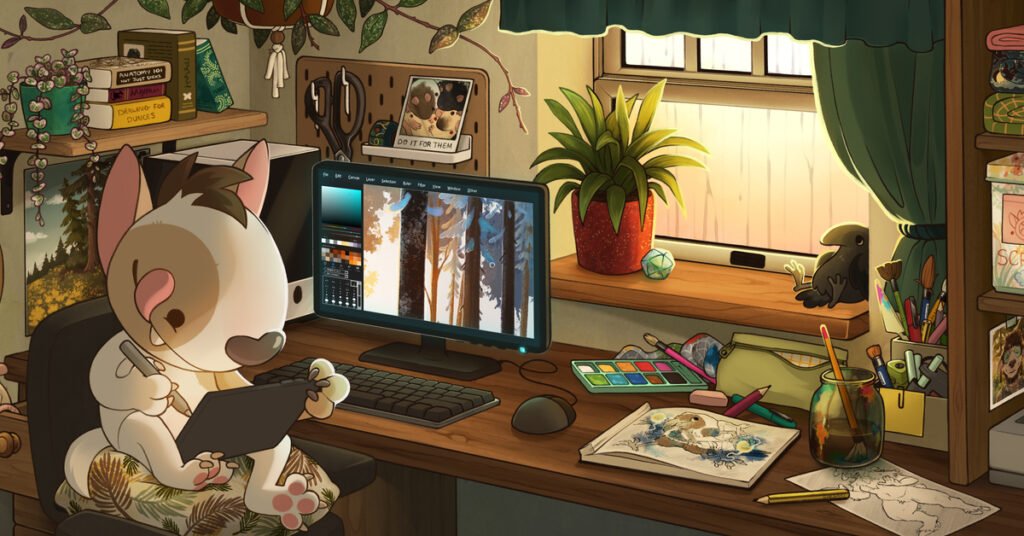 Hey there, I’m Allen, mainly known as Silkwurm online, a digital artist and fabric gremlin who takes a lot of inspiration from the natural world. After not being happy with the quality of a lot of mass-produced fabric merchandise, I decided to start sewing my own, focusing on using natural fibres and creating durable pieces. I also work both digitally and traditionally with mediums such as watercolours and acrylics to create artworks that I then make into prints, stickers, keychains and more. I also take on commission work as well as work with other artists to turn their designs into merch.
