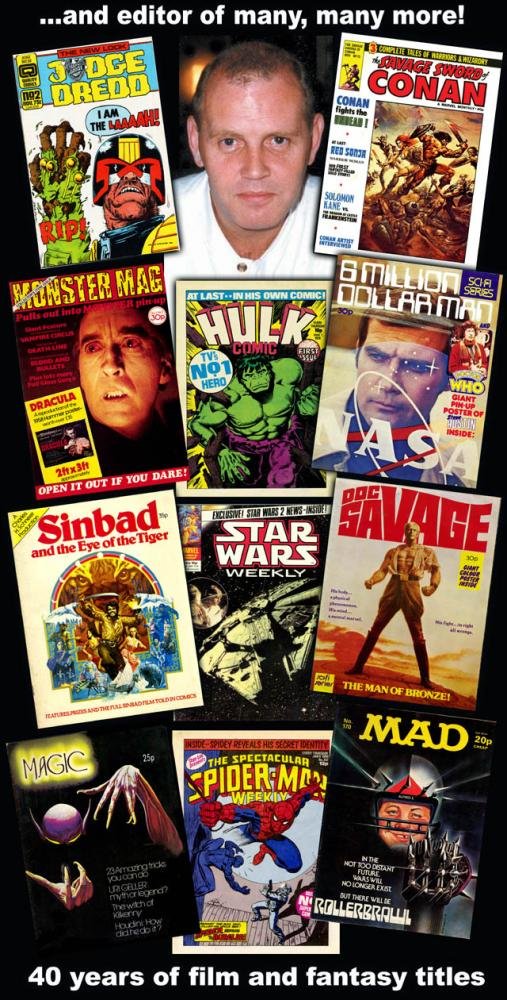 42 years in the industry (from IPC weeklies Buster, Whizzer & Chips and Cor!! to running Marvel UK and launching such titles as DOCTOR WHO WEEKLY, STARBURST – the world’s longest running SF & Fantasy Film Magazine, HULK COMIC and HAMMER’S HOUSE OF HORROR) and 16 years editing trade magazine COMICS INTERNATIONAL. Has to date edited over 80 different titles.